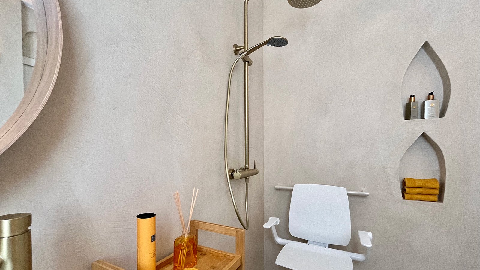 • Een makkelijk te bevestigen/verwijderen douchestoelzitje