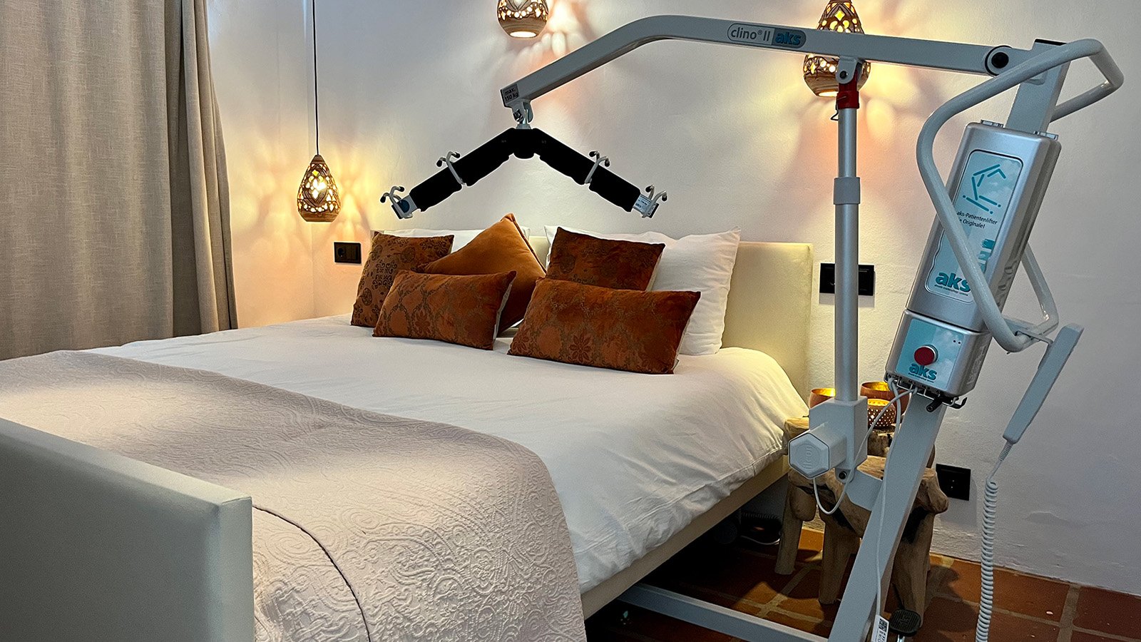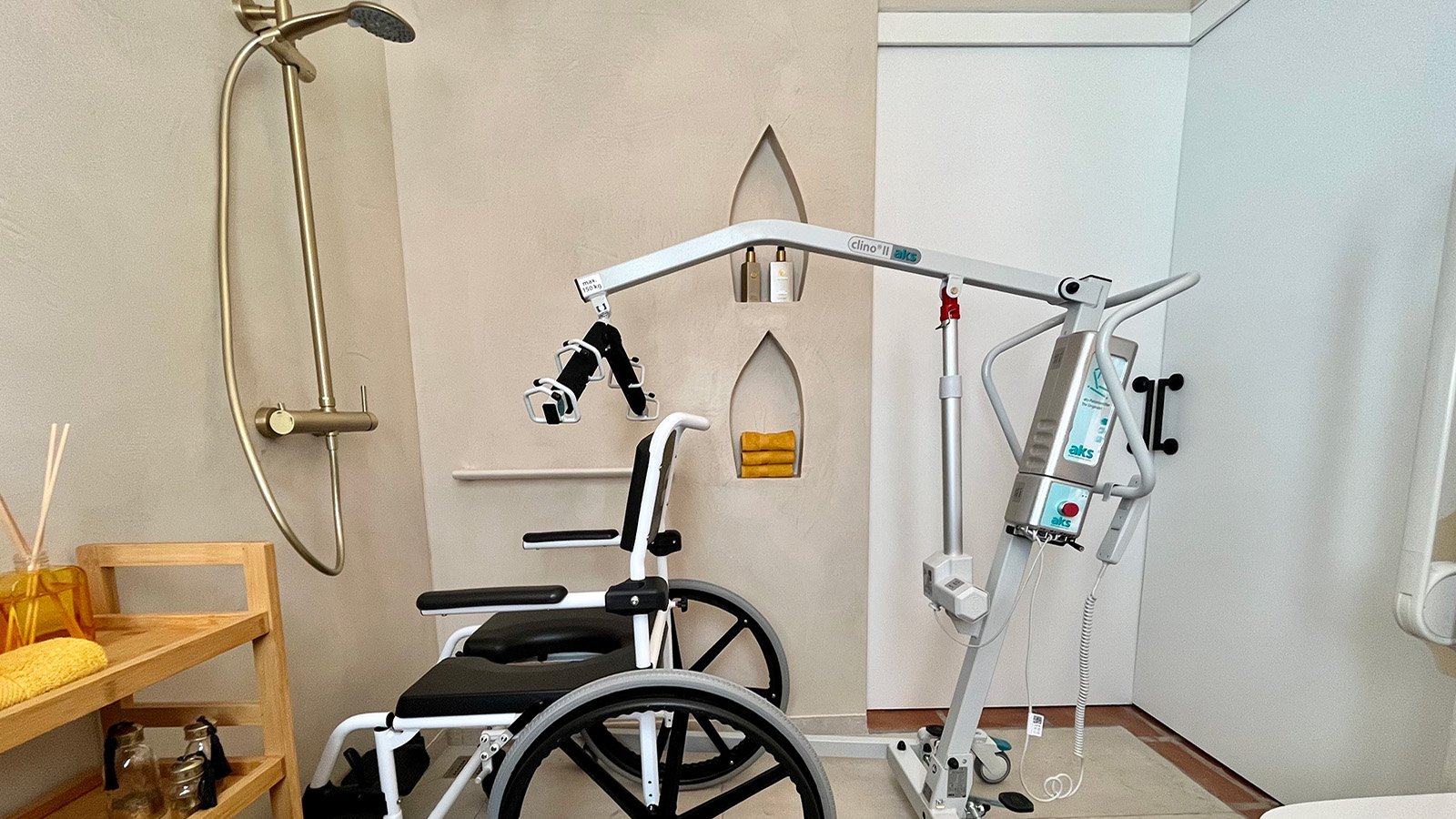 • Een mobiele elektrische tillift voor gebruik in de slaap- en badkamer.